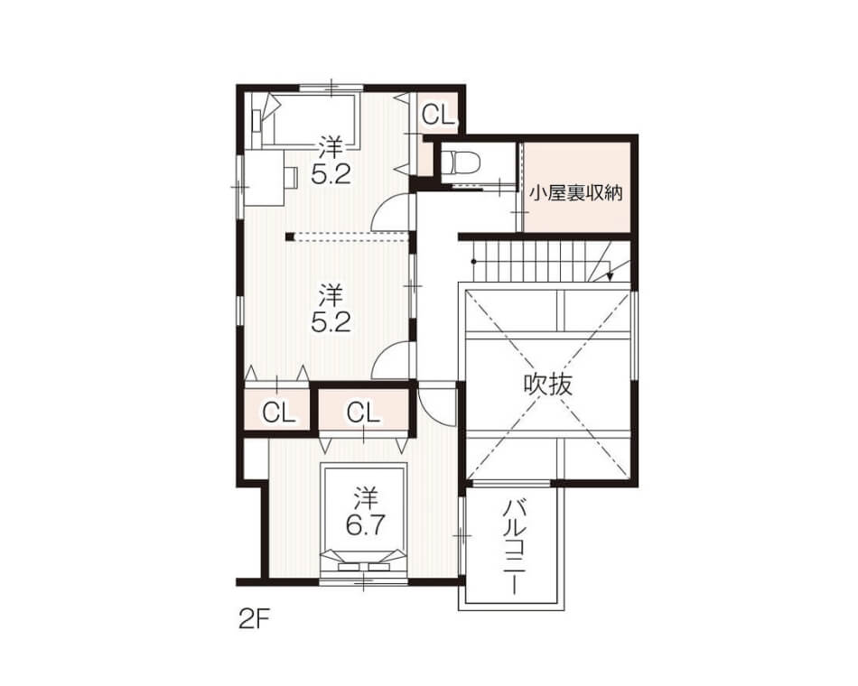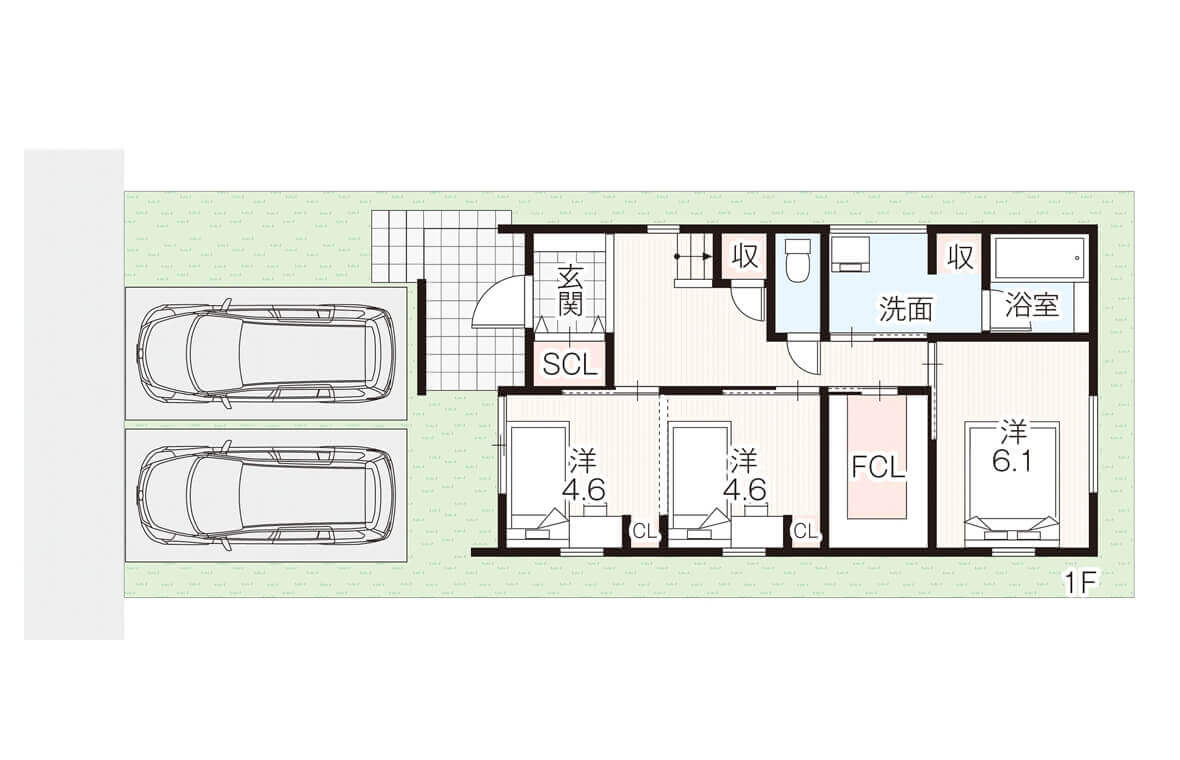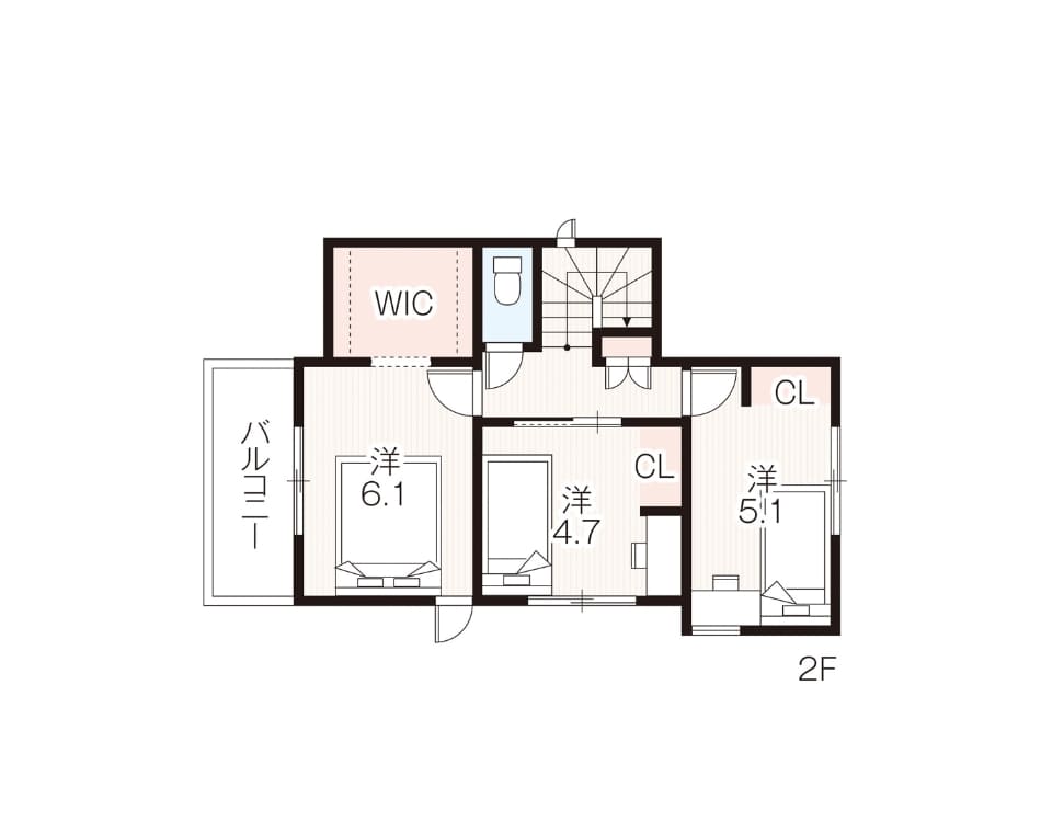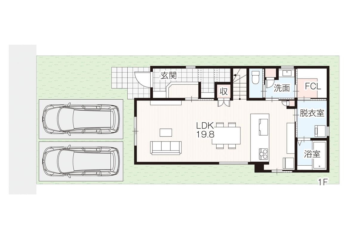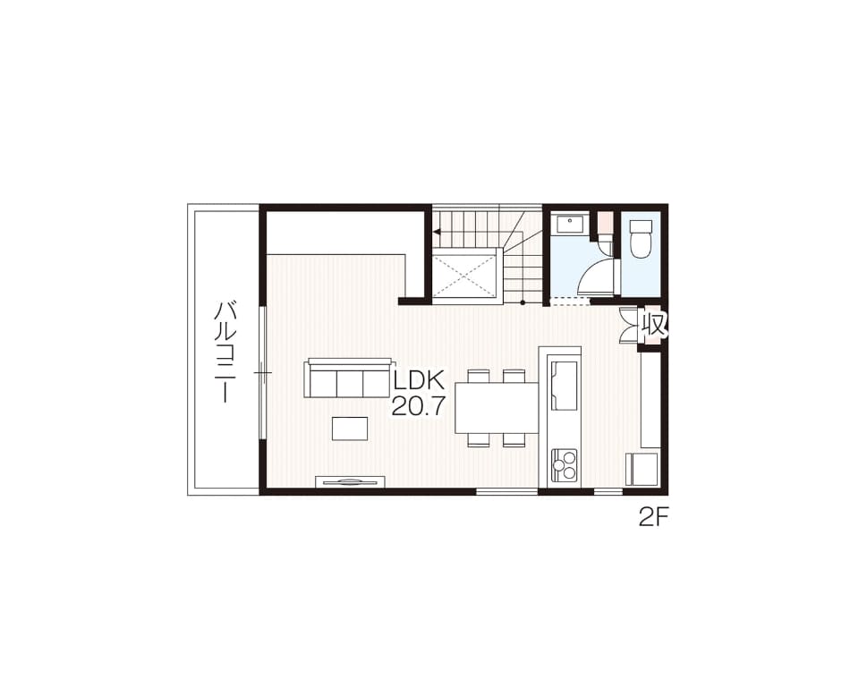 LDKを一直線に配置することで、広々とした開放感を演出。部屋全体がつながっているため、自然と家族とのコミュニケーションが生まれます。